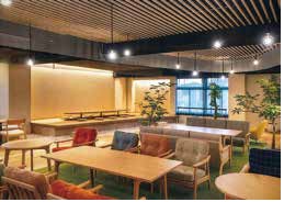 社員同士が交流できる環境として、室内庭園やカフェのような食堂・テラスも