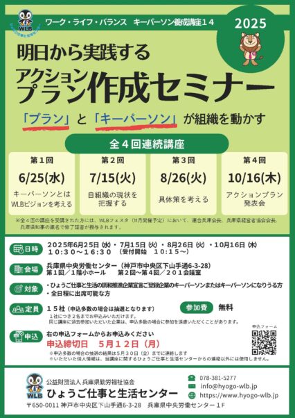 【参加者募集中】「ワーク・ライフ・バランス キーパーソン養成講座・2025 ~ 明日から実践するアクションプラン作成セミナー(全4回の連続講座) ~」