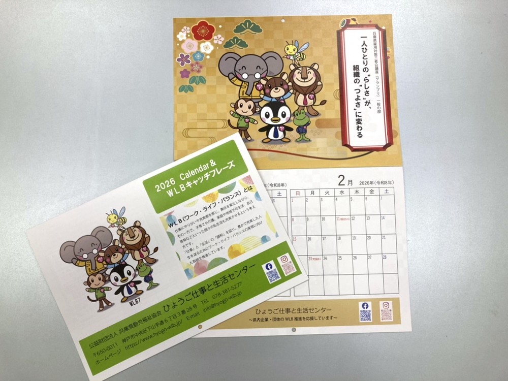 このたび、2026年度ワーク・ライフ・バランスキャッチフレーズ入賞作品とセンターのシンボルキャラクター「WLB7」を掲載したオリジナルカレンダーを作成しました。