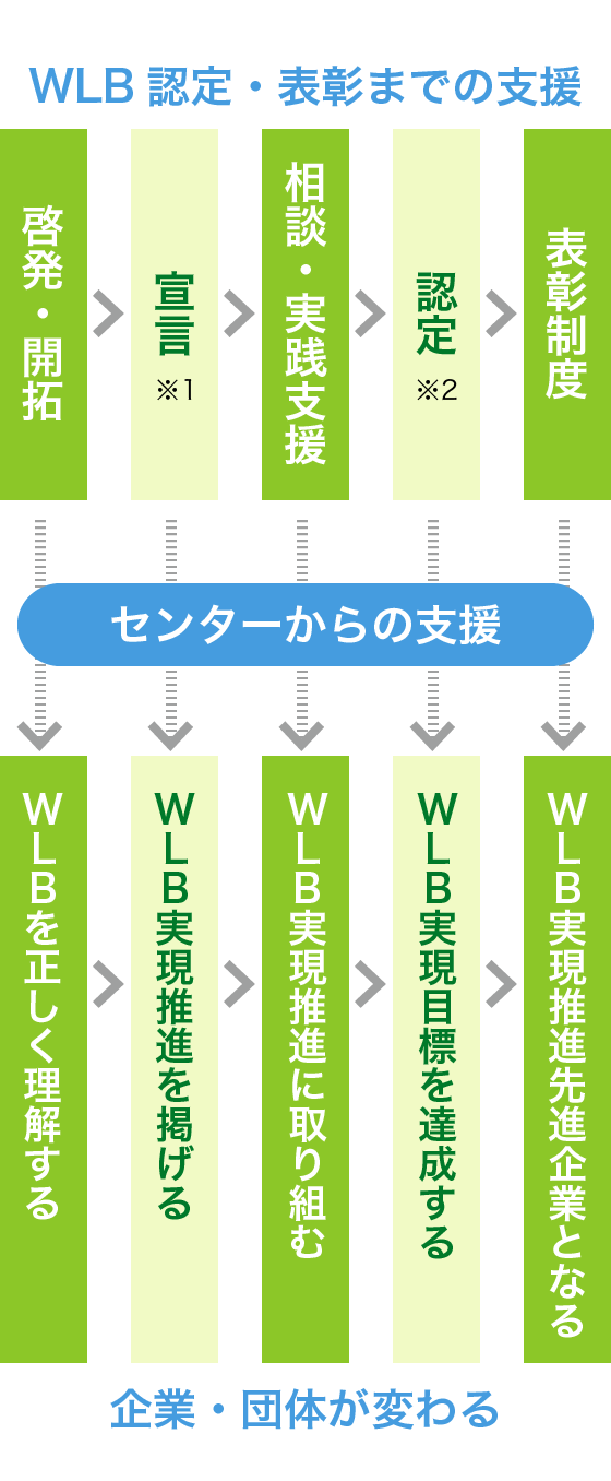 - WLB実現推進を宣言する「宣言書」を提出すれば「宣言企業」として登録されます。